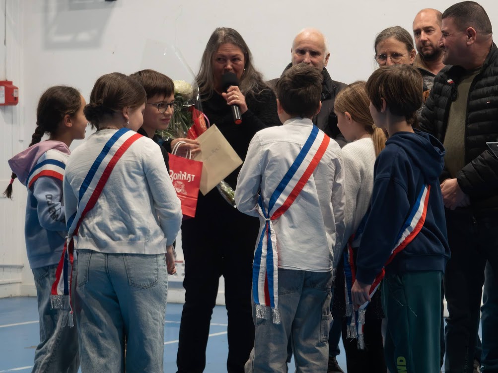 Après la projection d'un film sur les temps forts de l'année écoulée, Madame le Maire a pris la parole pour exposer les projets 2025, laissant également la parole aux adjoints et aux jeunes élus du Conseil Municipal des Enfants.
